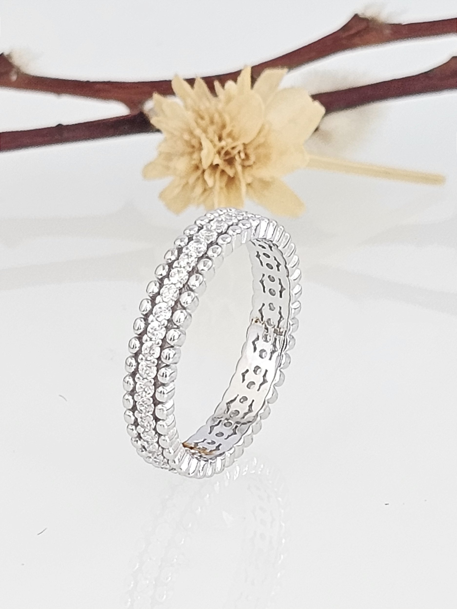 Este anel é confeccionado em prata 925 com ródio, garantindo durabilidade e um brilho excepcional. Seu design clássico e delicado o torna perfeito para ocasiões especiais, como casamentos e noivados, ou para complementar o seu estilo diário.