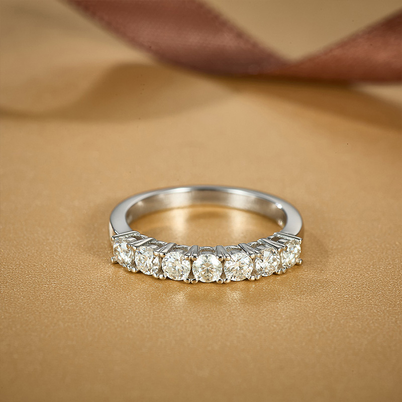 - Anel meia aliança 7 pedras Moissanite 3mm/0,7ct