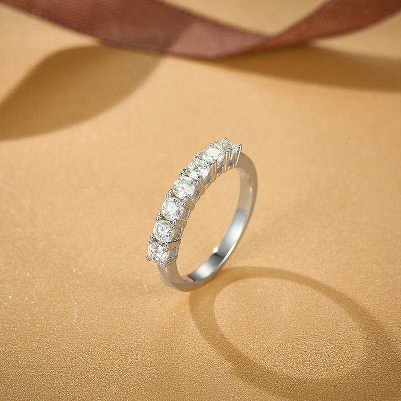 - Anel meia aliança 7 pedras Moissanite 3mm/0,7ct