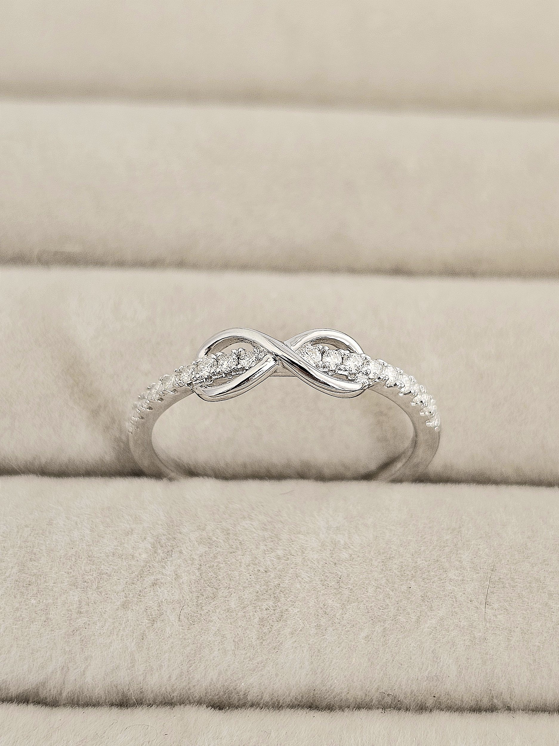 - Anel meia aliança com infinito Moissanite 1,2mm/0,14ct