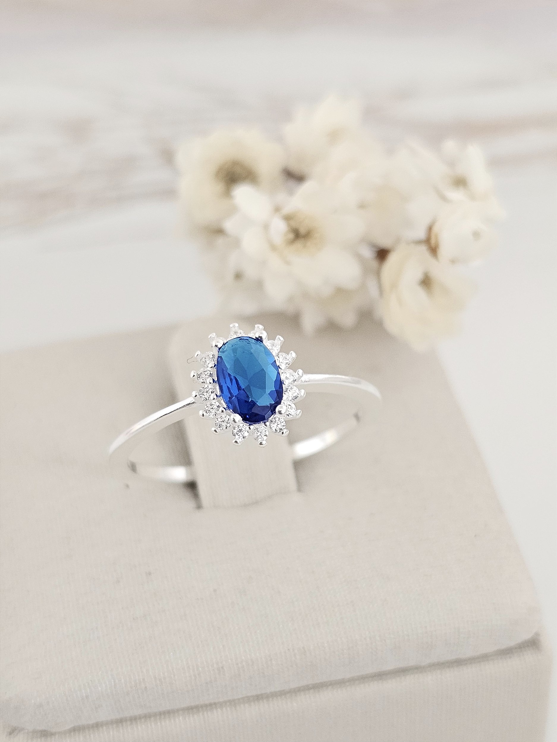 Anel solitário oval cravejado