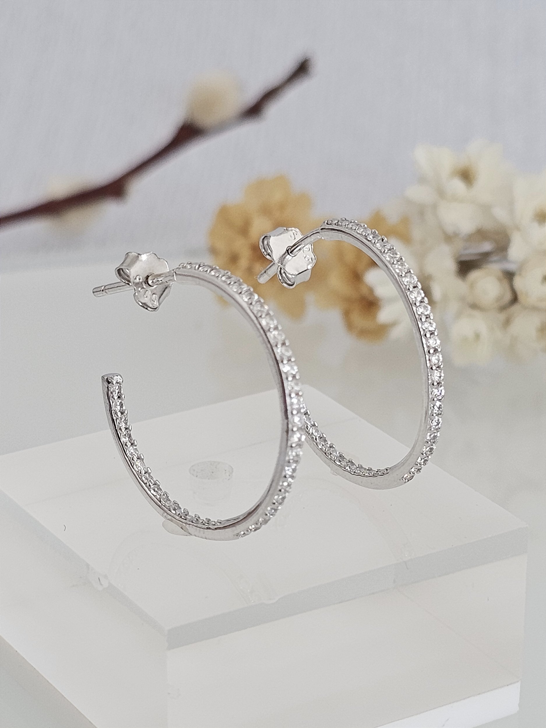 Brinco argola fina cravejada 20mm prata 925 com ródio é a escolha perfeita para quem busca elegância e sofisticação em cada detalhe. Com um diâmetro de 20mm, este brinco apresenta um design delicado que se adapta a diversas ocasiões, desde festas até eventos mais formais.