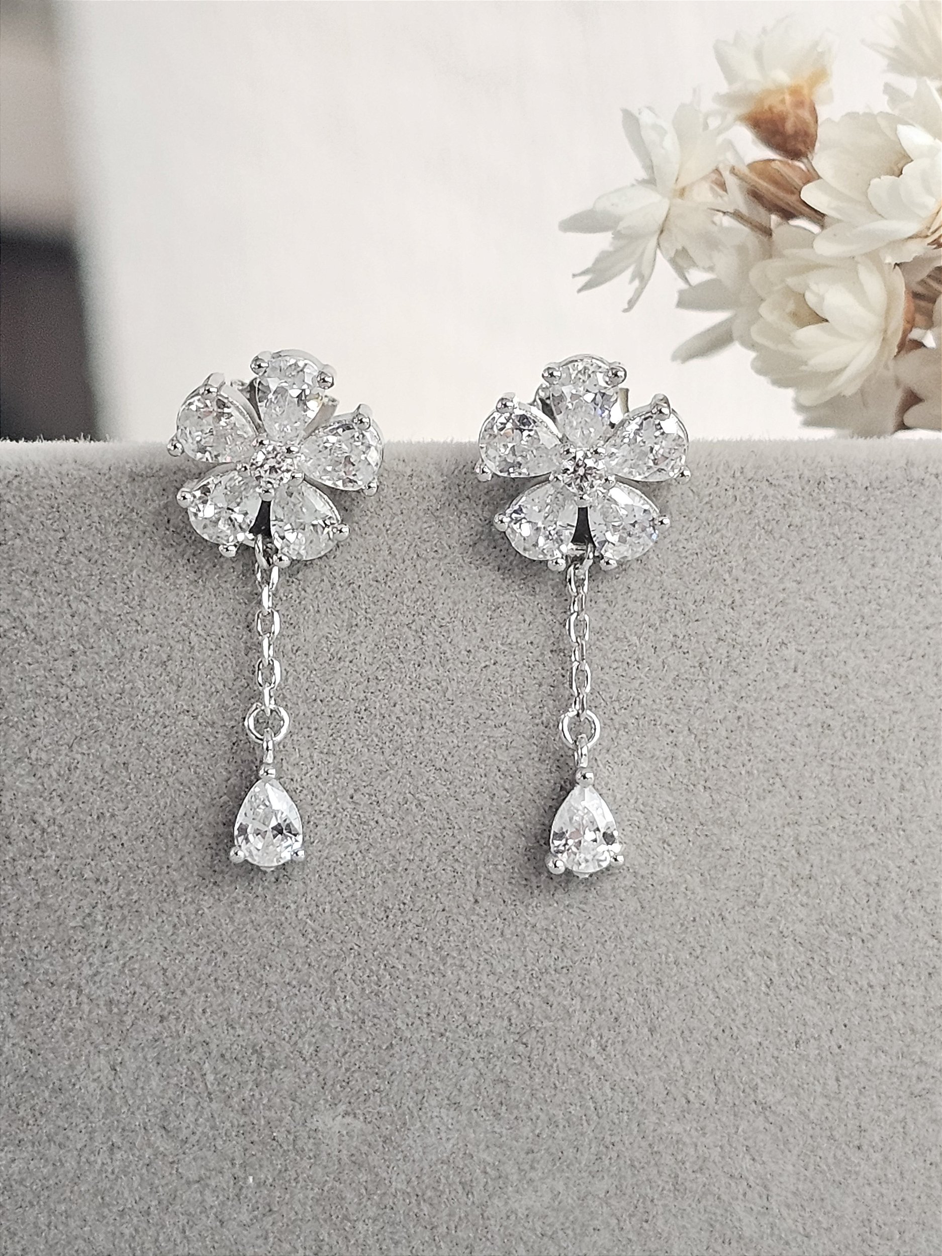 - Brinco em forma de flor de zircônia 5A, com gota de zircônia