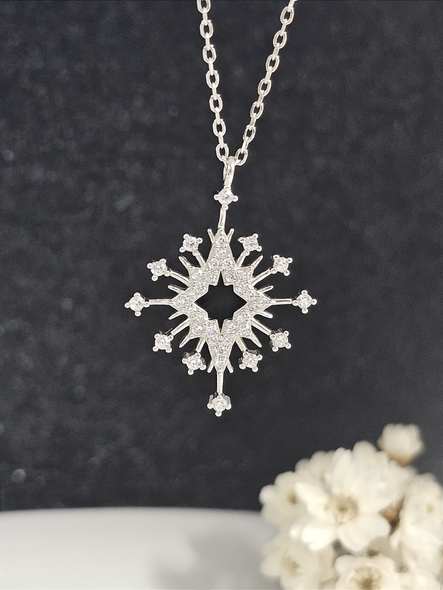 O design em losango cravejado traz um toque de modernidade, enquanto o acabamento em ródio garante durabilidade e brilho. Com um pingente em prata 925 adornado com zircônias, este colar reflete a luz de maneira encantadora, tornando-se um verdadeiro destaque em qualquer look.