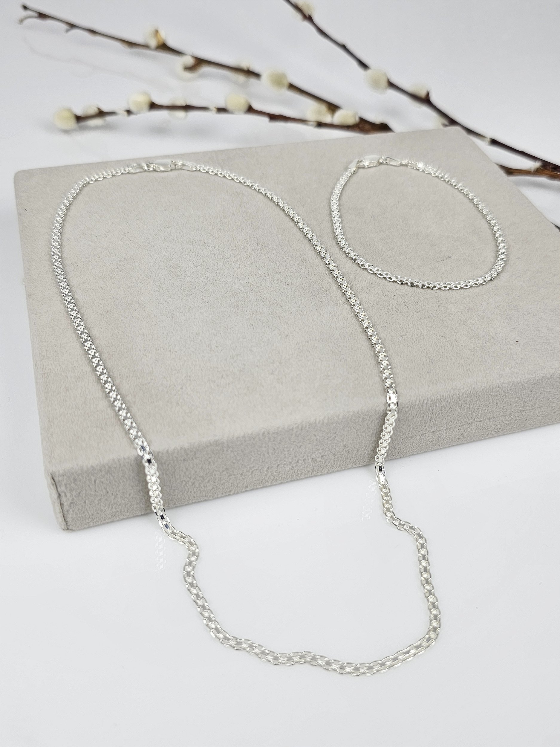 Esse conjunto e ideal para compor qualquer look. Além de sofisticado, esse conjunto esteira de corrente e pulseira têm um brilho e elegância de alta joalheria. São peças atemporais e modernas que podem ser usadas em qualquer ocasião, pois além de tudo, são peças muito confortáveis e leves para usar o dia inteiro.