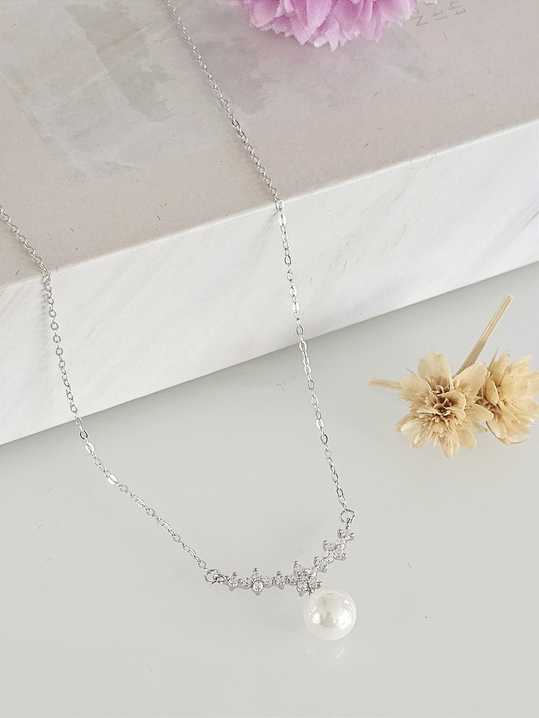 Fabricada em prata 925 com acabamento em ródio, a gargantilha apresenta um pingente adornado com pérola e zircônias, que refletem a luz de maneira deslumbrante. Seu estilo feminino e refinado combina perfeitamente com diferentes looks, desde os mais casuais até os mais formais.