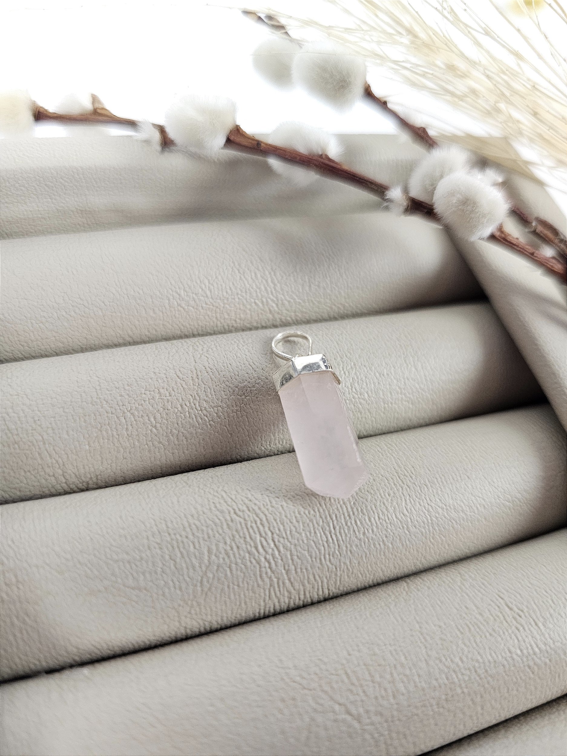 - Pingente de ponta de cristal quartzo rosa lapidado de 1,5 cm.
