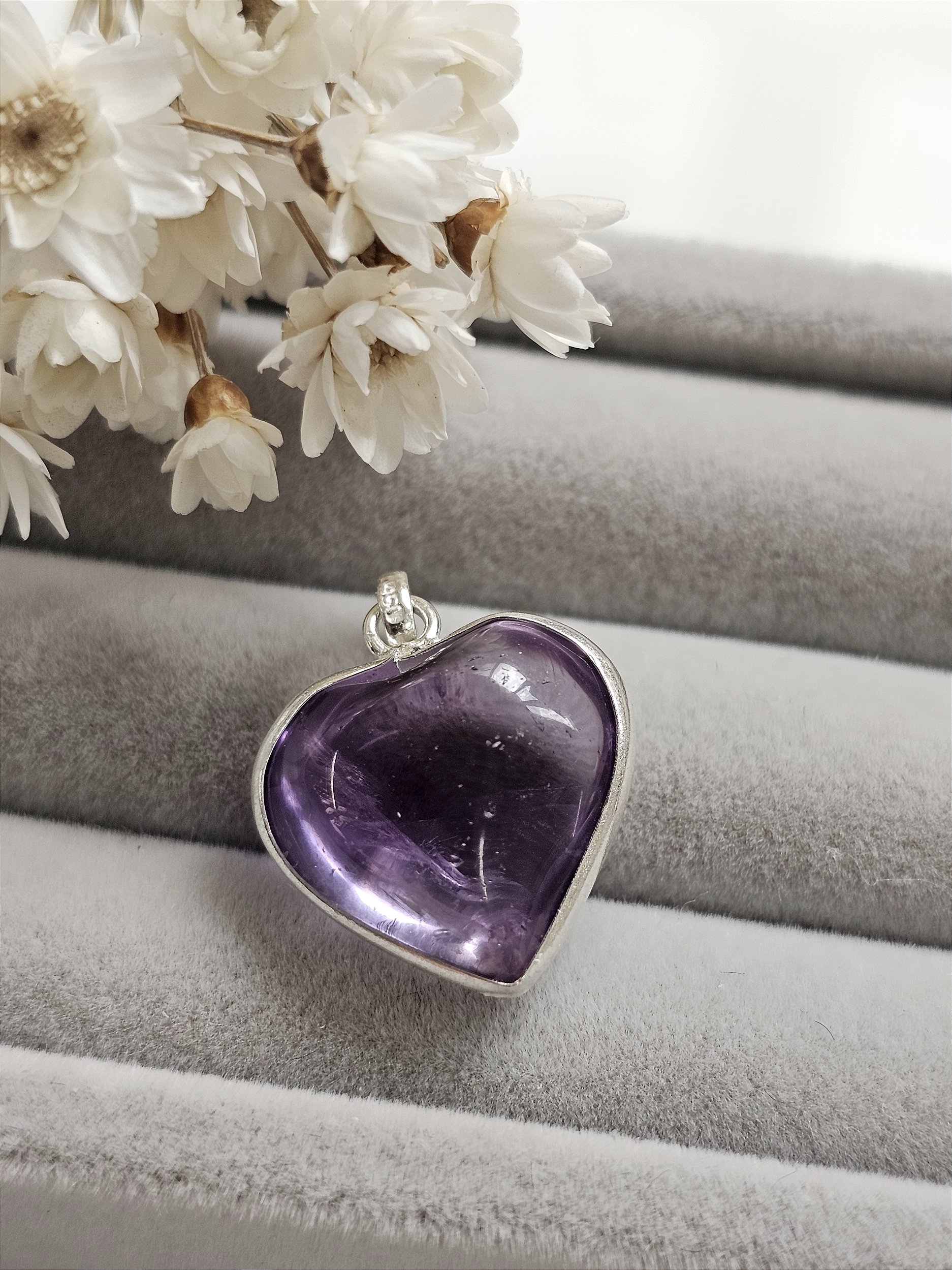 - Pingente em forma de coração de pedra natural Ametista lapidada de 1,6cm