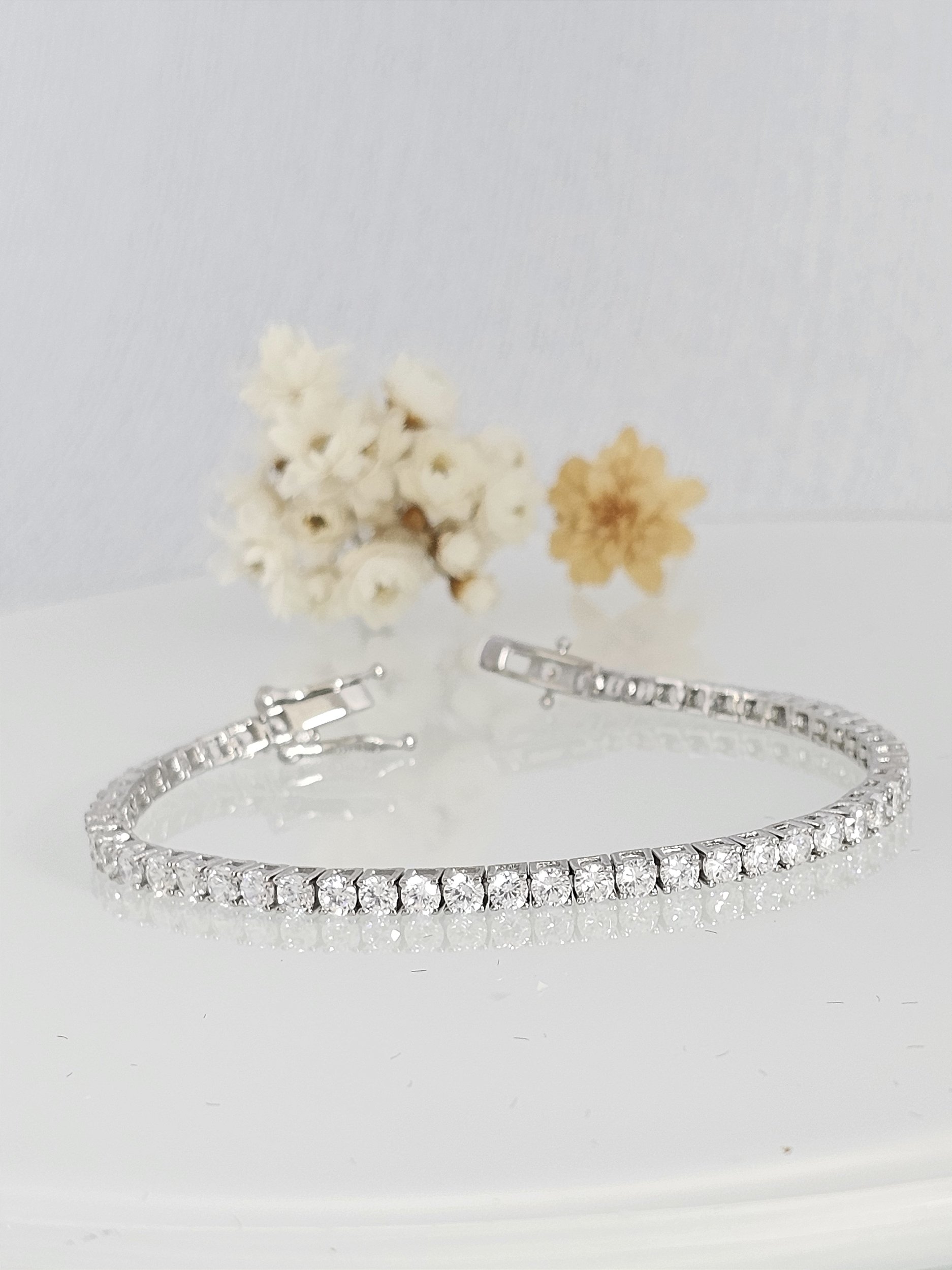 Pulseira Riviera cristal 3mm fecho gaveta prata 925 com banho de ródio/ 18cm